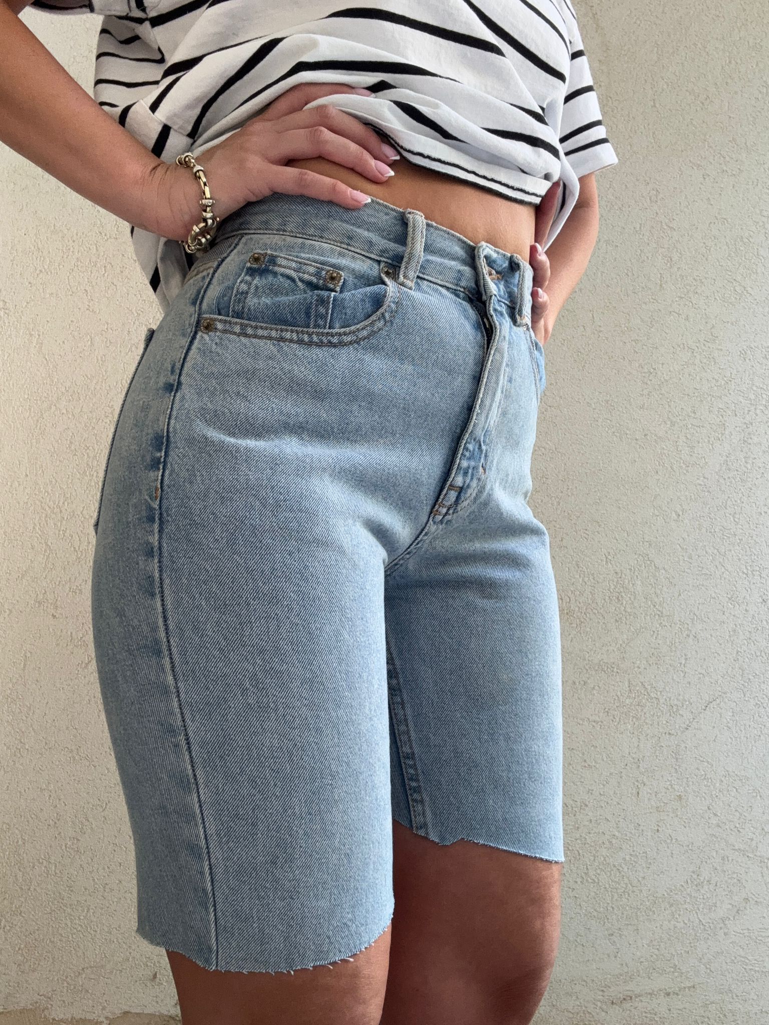 שורט ג'ינס בהיר ודק קליל